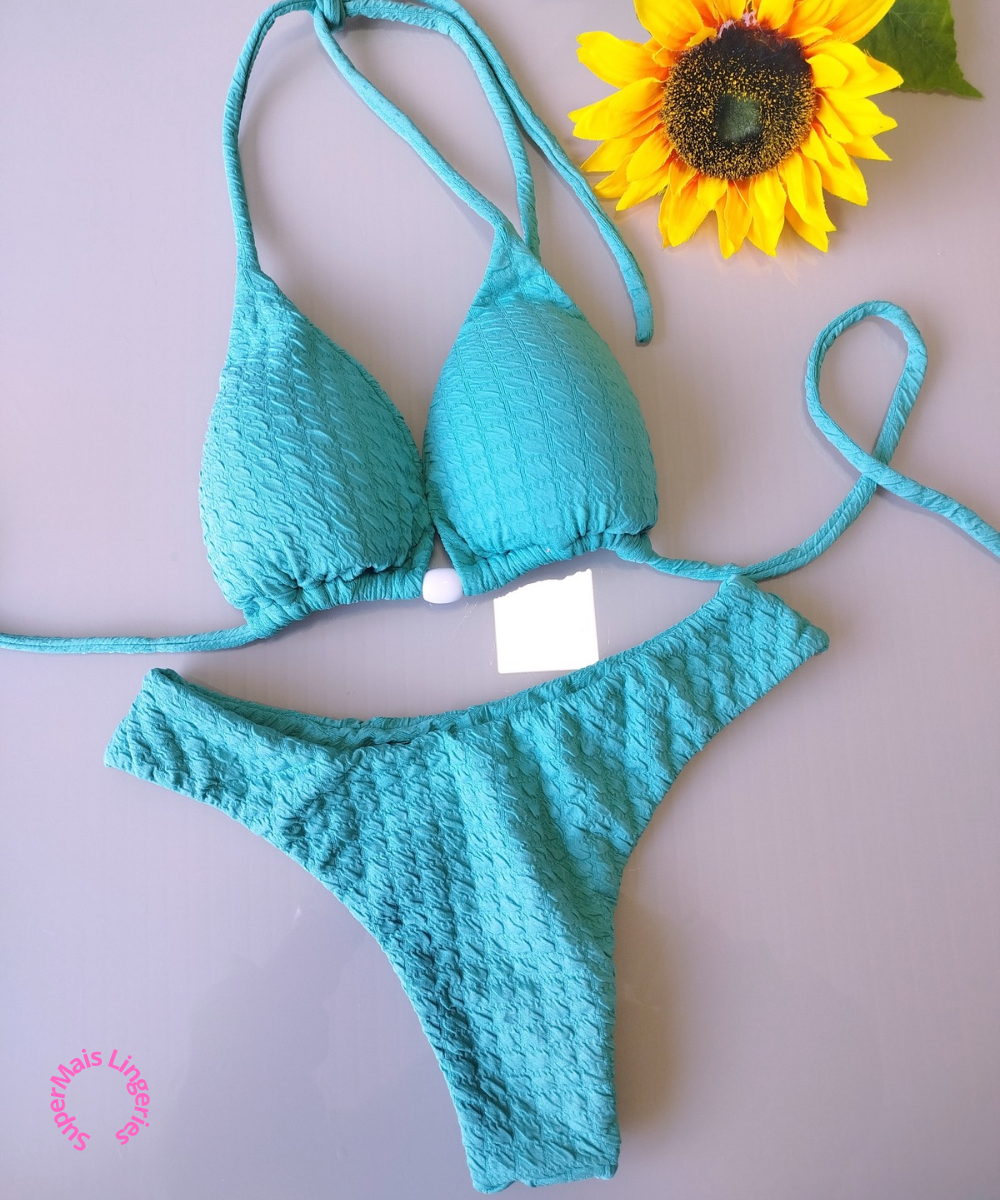 Tanga fio duplo. Sutiã com bojo removível.
