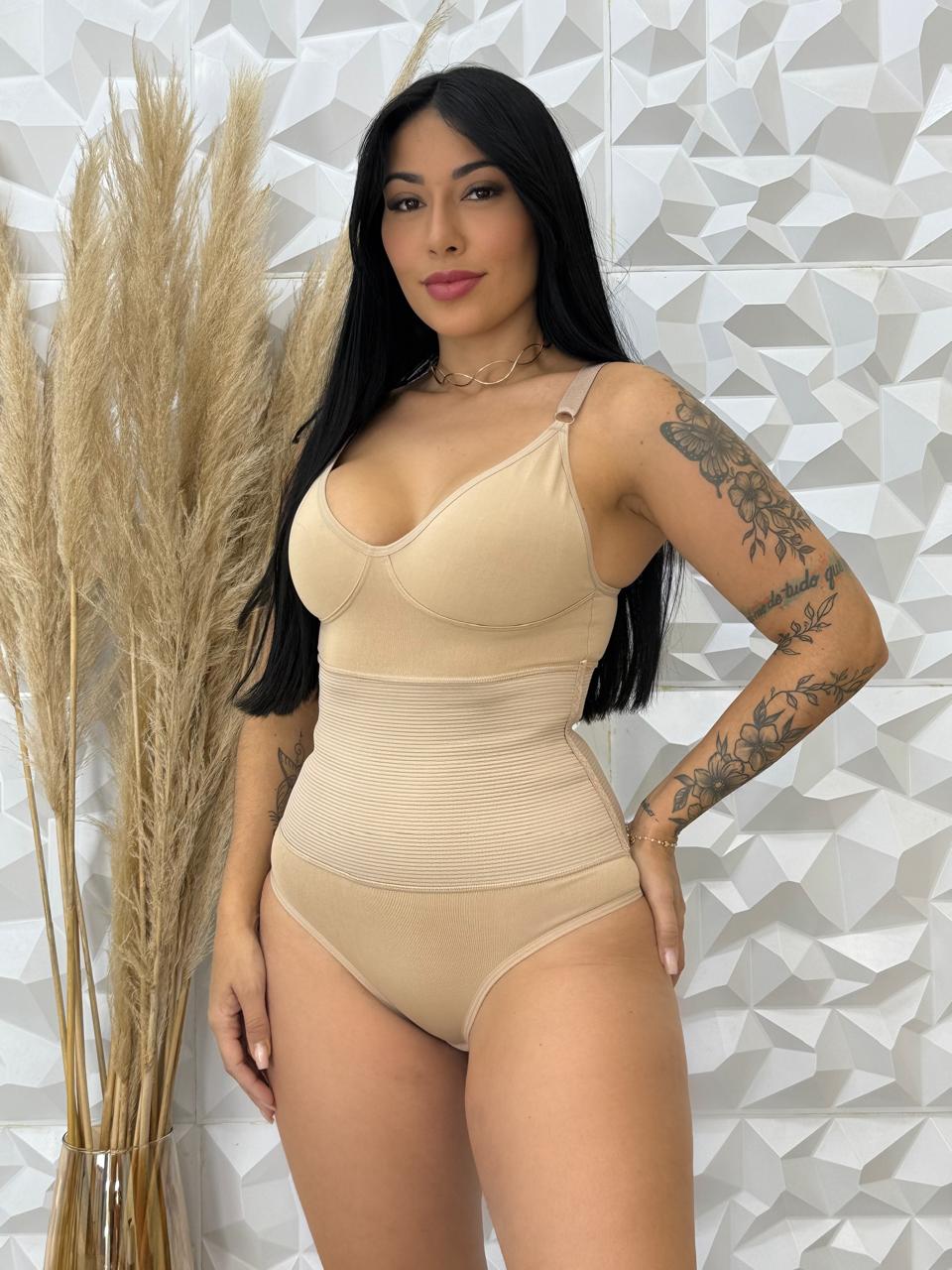 Inclui 1 body modelador Galena sem bojo com regulagem nas alças.