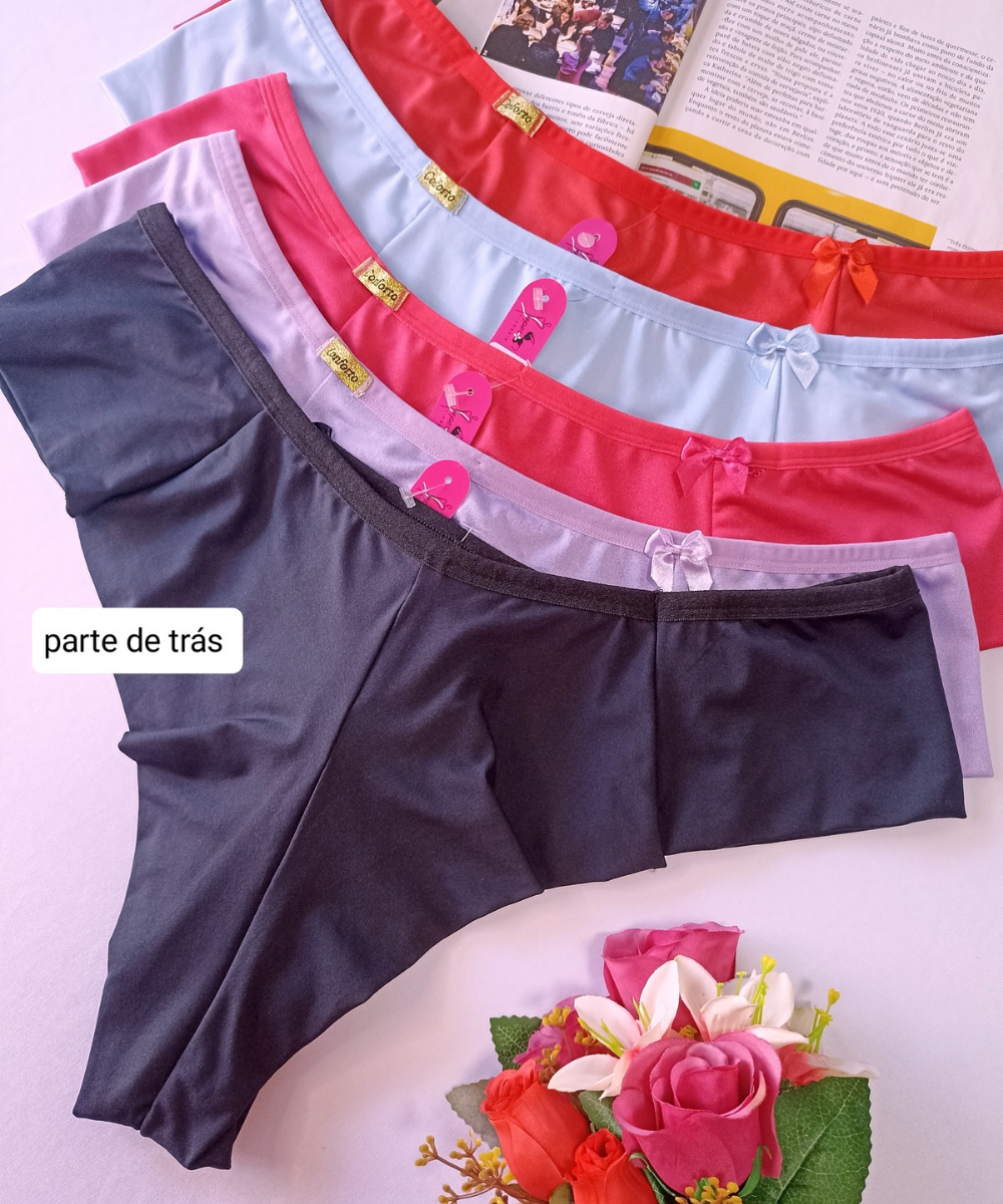 Calcinha em microfibra de poliéster, lateral dupla, fio duplo extremamente confortável.