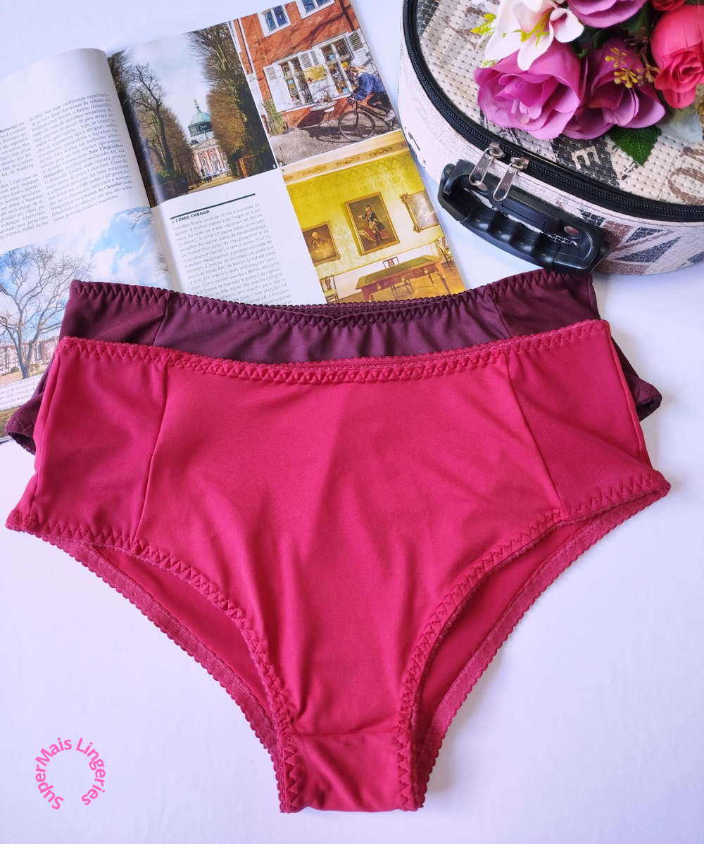 Calcinha modelo senhoras em microfibra com detalhes em renda e forro de algodão.