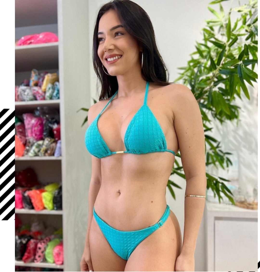Biquíni com bojo removível, calcinha fio regulagem nas laterais. Tecido com toque macio e confortável.